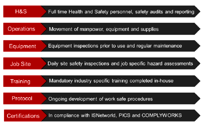 We meet, or exceed the requirements of the Mining Association of Canada and The Oil Sands Safety Association. The company is a member of professional and safety based organizations such as ISNetworld, AVETTA and COMPLYWORKS. It is a part of Earth-Mars Construction Company’s value system to remain the industry leader in safe work procedures and practices.